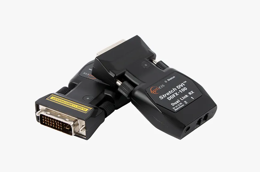 The Opticis DDFX-100-TR is a dual-link DVI optical extender designed to transmit uncompressed, high-resolution DVI video over long distances using fiber optic cabling. It supports WQXGA (2560×1600) at 60Hz and WQUXGA (3840×2400) at 33Hz, making it ideal for medical imaging, control rooms, film production, and high-resolution visualization systems where signal integrity is non-negotiable.