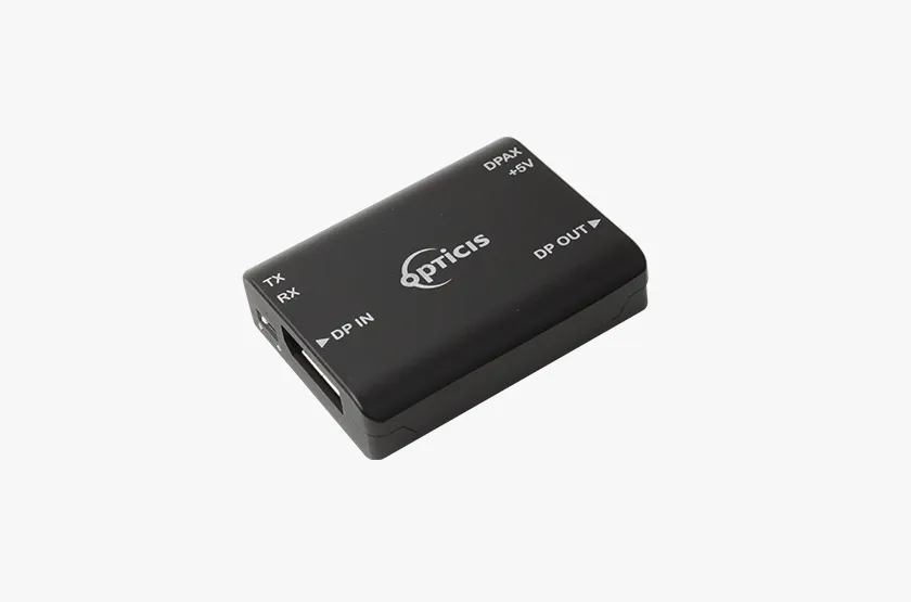 The Opticis DPAX is a DisplayPort 1.2 data recovery repeater designed to extend the usable distance of DisplayPort video connections by regenerating and stabilizing the signal between long cable runs or extender segments. It enables reliable transmission of 4K UHD (4096×2160) at 60Hz over longer combined cable lengths while maintaining signal integrity for high-bandwidth DisplayPort 1.2 links.